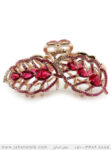 گل سر زنانه پشت مو طرح برگ نگین صورتی