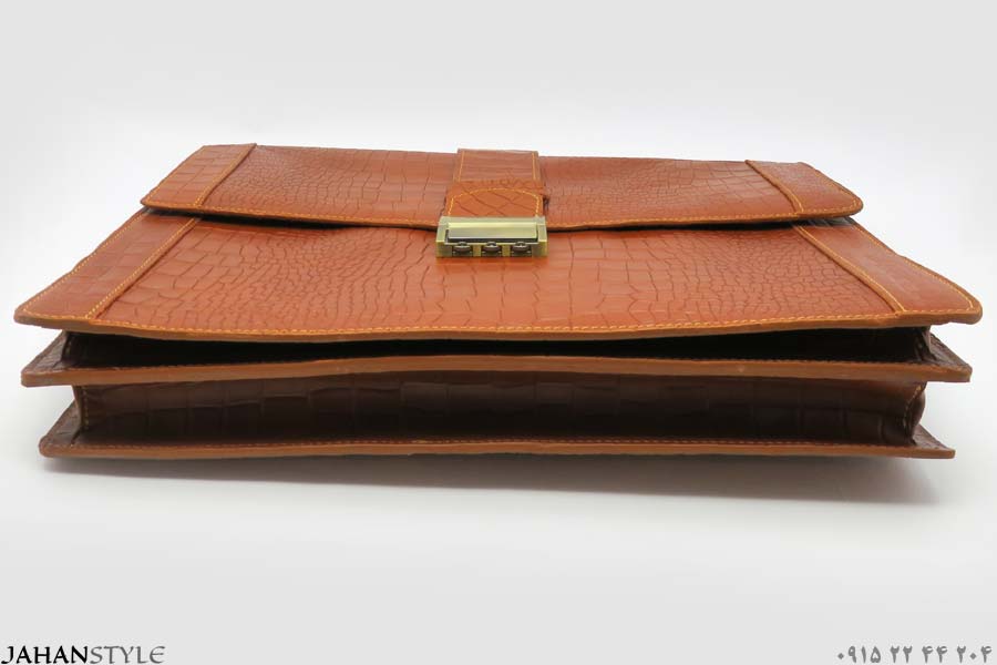 قفل جلویی در این مدل، قفل رمز دار میباشد که رنگ آن طلایی و متناسب با رنگ عسلی خود کیف است.