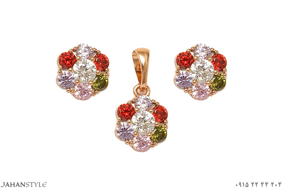 نیم ست شوپینگ طلایی طرح گل نگین رنگی