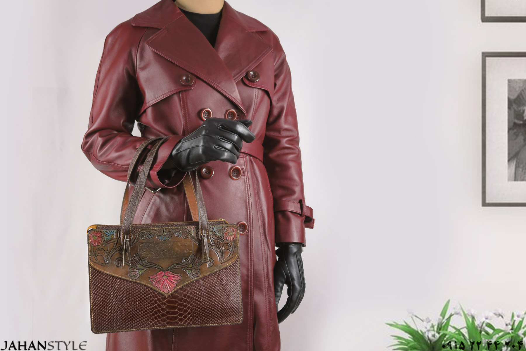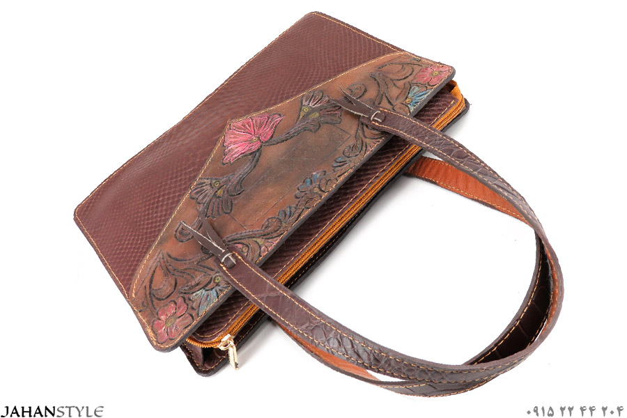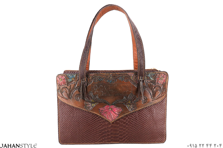 کیف دستی چرم طبیعی قلمزنی طرح گل