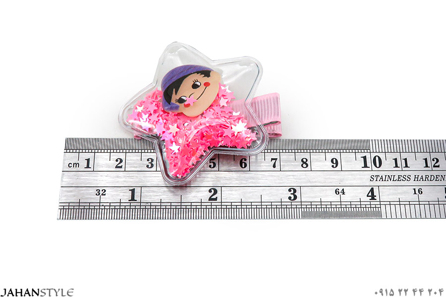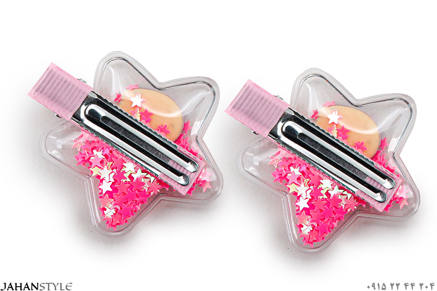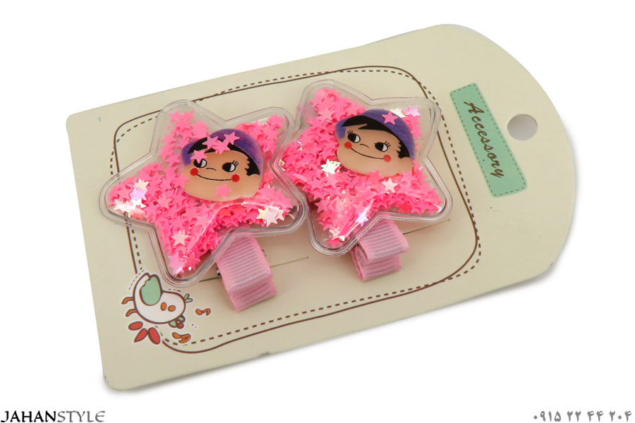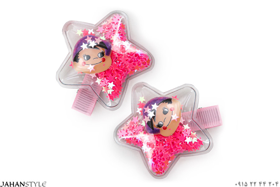این گل سر طرح ستاره جفتی دارای یک ستاره بزرگ از جنس pvc است. داخل آنها ستارههای ریز صورتی و همچنین یک آدمک دیده میشوند. این گلسر برای دختربچهها بسیار جذاب و زیباست.