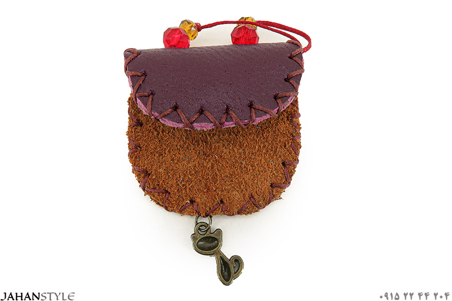 رومانتویی و جا حرزی چرم طبیعی عسلی