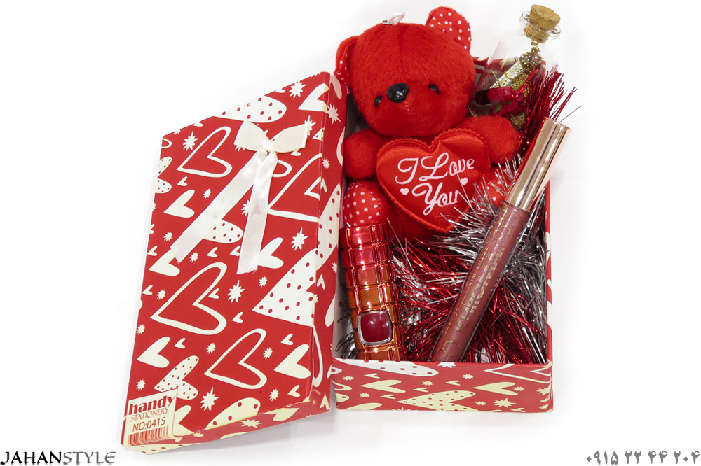 جعبه کادویی ولنتاین- هدیه ولنتاین اقتصادی- پک ارزان ولنتاین- باکس خرس قرمز