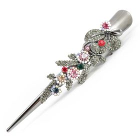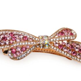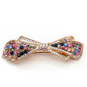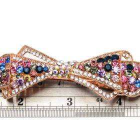 گیره پشت مو فلزی نگین رنگی طرح پاپیون