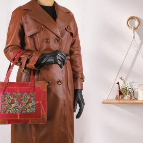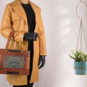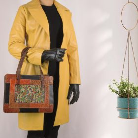 کیف دوشی چرم طبیعی قلمزنی طرح شکوفه