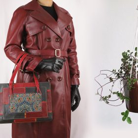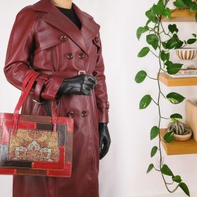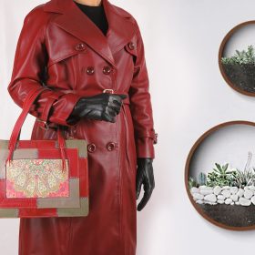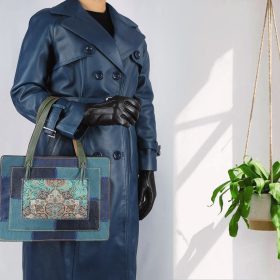 کیف دستی چرم طبیعی چهلتکه ترمه دوزی