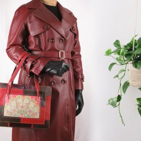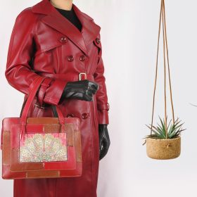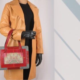 کیف دوشی چرم طبیعی قلمزنی طرح رز